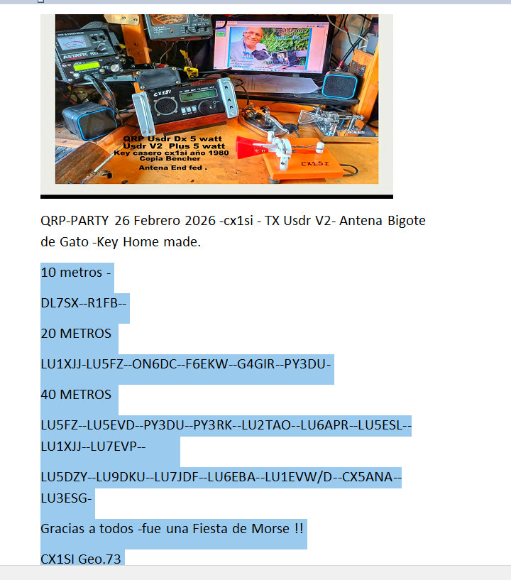 Resumen GUCW QRP PARTY – 26 de Febrero de 2026